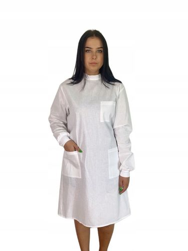 Wysoka jakość bawełny sprawia, że fartuch jest odporny na codzienne zużycie, zachowując swój kształt i biel nawet po wielokrotnym praniu. Materiał łatwo utrzymać w czystości, co jest kluczowe w warunkach wymagających higieny, zapewniając niezawodną ochronę bez kompromisów w zakresie trwałości i świeżości.