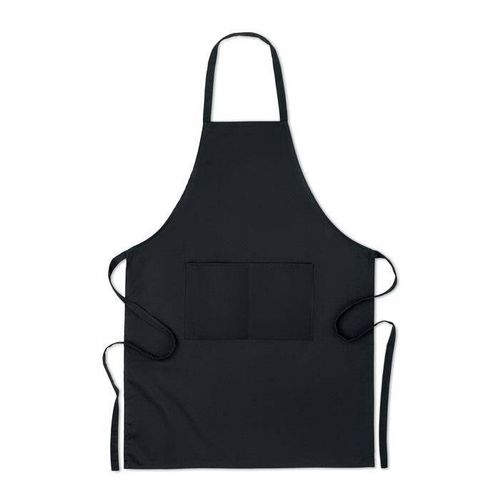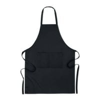 Regulowany fartuch kuchenny z 3 kieszeniami z przodu, z dżinsu 240 gr/m² z bawełnianymi paskami.