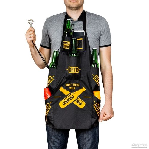 Fartuszek dla gotującego faceta to idealne rozwiązanie dla mężczyzn, którzy wierzą, że gotowanie to nie tylko sztuka, ale także doskonała okazja do zabawy i relaksu w kuchni. Ten unikalny fartuch został stworzony z myślą o tym, by każdy facet mógł czuć się pewnie i dumnie w swojej roli kucharza. Dzięki przemyślanej konstrukcji z 7 funkcjonalnymi kieszeniami, wszystkie najważniejsze rzeczy będą zawsze w zasięgu ręki!