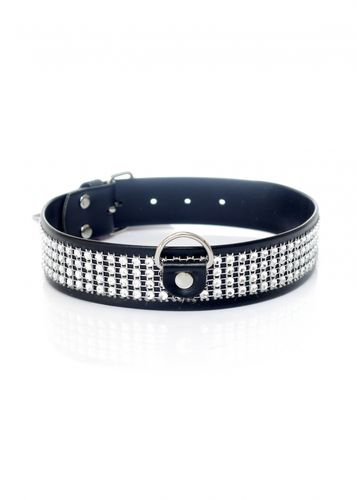 Ekskluzywna obroża z kryształkami w kolorze srebrnym z wytrzymałej skóry ekologicznej delikatnej w dotyku, dzięki czemu jest wygodna w noszeniu