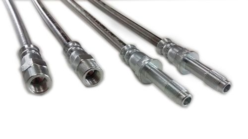 W skład zestawu wchodzi 6szt przewodów hamulcowych elastycznych teflonowych w oplocie stalowym: