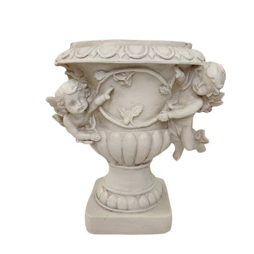 Osłonka z aniołkami w kształcie pucharu, w kolorze złamanej bieli z delikatną patyną.