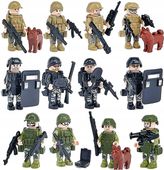 ✔️⭐KOMPLETNY ZESTAW⭐ - 12 figurek z pełnym wyposażeniem taktycznym including kamizelki, nakrycia głowy, noktowizory, gogle, tarcze, karabiny i psy.