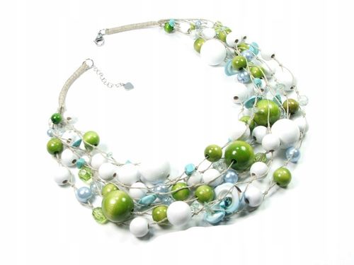 Naszyjnik utrzymany jest w białej, turkusowej i jasnozielonej kolorystyce, co dodaje mu naturalności i świeżości. Wkładany ręcznie kwarc, turkus i korale przypominają o sile natury, wprowadzając unikalny akcent do stylizacji.