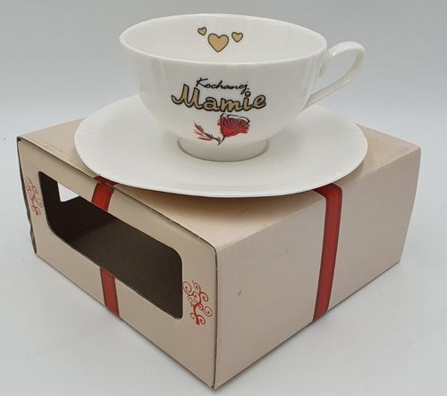 Filiżanka wykonana jest z ceramiki i posiada ozdobny kartonik. Pojemność filiżanki wynosi 200 ml