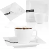 Ten praktyczny zestaw sprawdzi się w każdej kuchni, biurze czy kawiarni. Niewielka pojemność filiżanki – 80 ml – została stworzona z myślą o aromatycznym espresso lub ristretto. Spodek ułatwia serwowanie i chroni blat przed zabrudzeniami, tworząc przy tym estetyczną całość. Świetny wybór zarówno do użytku domowego, jak i do profesjonalnych zastosowań.