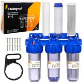 Ten wysokiej jakości zestaw 3-stopniowego filtra wstępnego do wody marki STEINGRAF z korpusem obudowy 1'' GW to nie tylko solidna konstrukcja, ale także precyzyjne rozwiązanie dla instalacji domowej. Zaprojektowany z elegancją i ergonomicznym wzornictwem, zapewnia estetyczny wygląd, a trzy korpusy z doskonałym uszczelnieniem ułatwiają bezproblemową wymianę wkładów, gwarantując niezawodne filtrowanie na co dzień.