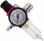 Reduktor ciśnienia urządzeń pneumatycznych filtruje, odwadnia, odoleja oraz oczyszcza powietrze z zanieczyszczeń. Reduktor ciśnienia do urządzeń pneumatycznych wyposażony w kompletny blok przygotowania powietrza.
