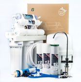 Ten zaawansowany 7-stopniowy system odwróconej osmozy RO7 wykorzystuje precyzyjnie dobrane wkłady sedymentacyjne C10P20 i C10P5 oraz węglowy C10CB, które skutecznie eliminują rdzę, piasek, zawiesiny, chlor i substancje organiczne. Membrana osmotyczna usuwa aż do 99% zanieczyszczeń większych od 0.001 µm, zapewniając niespotykaną czystość wody w Twoim domu.