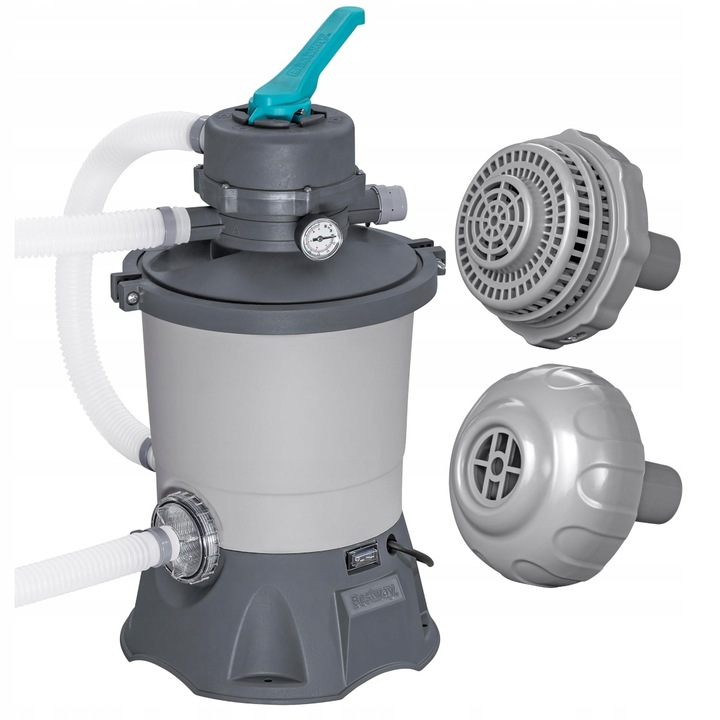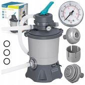Filtracje piaskowe Bestway® Sand Filter to wysoce skuteczny i bezpieczny dla środowiska sposób utrzymania czystej wody w basenie. Jest to bardziej opłacalne rozwiązanie niż tradycyjna pompa filtrująca, ponieważ do oczyszczania wody wykorzystuje piasek krzemionkowy zamiast papierowego wkładu filtracyjnego, podczas gdy wkłady tradycyjne należy wymieniać co 2 tygodnie, piasek krzemionkowy wystarcza na 3 lata. Piasek wyłapuje brud i zanieczyszczenia, a zbiornik filtra wstępnego filtruje większe rzeczy, zapewniając czystą wodę przez cały sezon.