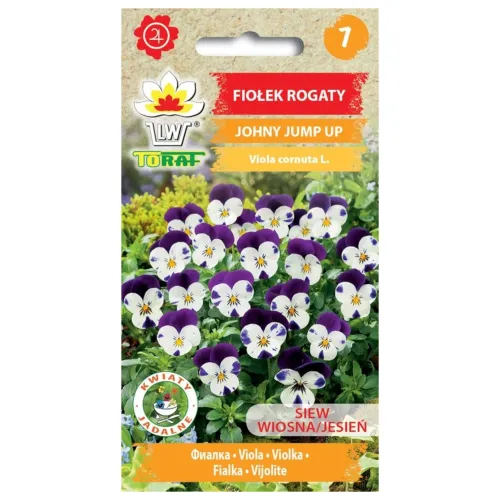 Fiołek rogaty JOHNY JUMP UP (Viola cornuta L.) to niewielka, krótkowieczna bylina o wysokości 10-15 cm, ceniona za swoje drobne, wielobarwne i pachnące kwiaty, które pojawiają się od maja do września. Roślina jest łatwa w uprawie i sprawdza się w pojemnikach, donicach oraz jako obwódki rabat i w ogrodach skalnych. Co więcej, świeże kwiaty fiołka rogatego mają lekko słodki smak, dzięki czemu mogą być używane do dekoracji sałatek warzywnych i owocowych. Siew w V-VII do pojemników lub na rozsadniku, sadzenie w VII-X. Można także wysiewać jesienią (X-XI), wtedy pierwsze siewki pojawią się wczesną wiosną (III-IV).