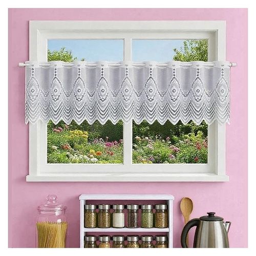 Przestawiamy metrażową firanką Daniela o wysokości 40 cm – idealne połączenie estetycznego stylu i funkcjonalności żakardu dla dekoracji Twojego okna w jadalni lub kuchni.
