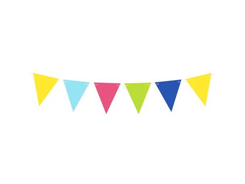 Flagi dekoracyjne na przyjęcia urodzinowe i nie tylko w kolorze wielokolorowym. W komplecie znajduję się 10 flag i zostały wykonane z papieru. Wysokość flagi to 17 cm, a w opakowaniu znajdziemy także sznurek o długości 3 metrów, aby rozwiesić je w dowolnym miejscu.