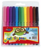 Mazaki zapakowane w plastikowe przejrzyste etui z etykietą informacyjną i zawieszką na górze.