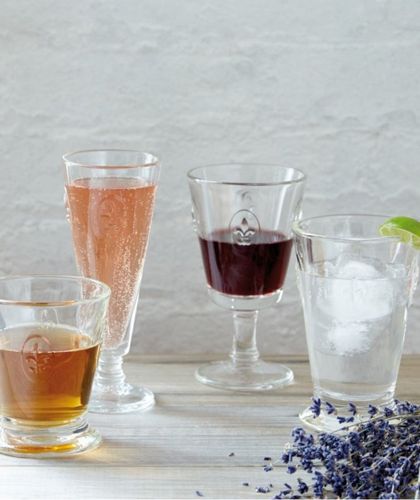 Szklanka z prostej i eleganckiej kolekcji Fleur de lys wykonana z grubego, a jednocześnie subtelnego, prasowanego szkła, sygnowana wypukłym motywem kwiatu lilii. Zaprojektowana tak, aby w pełni powitać pełną gamę zapachów i smaków. Doskonale leżąca w dłoni,