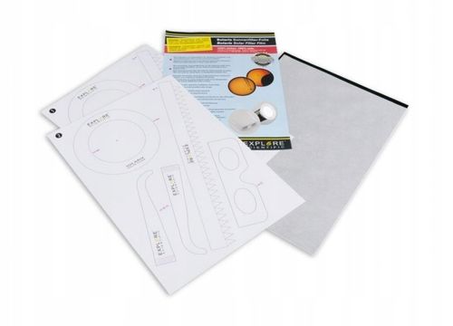 W zestawie znajduje się nie tylko folia filtrująca, ale również sztywny szablon ułatwiający wykonanie filtrów i okularów do obserwacji zaćmień. Dołączona instrukcja pozwala na samodzielne i bezproblemowe przygotowanie się do nadchodzącego częściowego zaćmienia 29 marca 2025 roku.