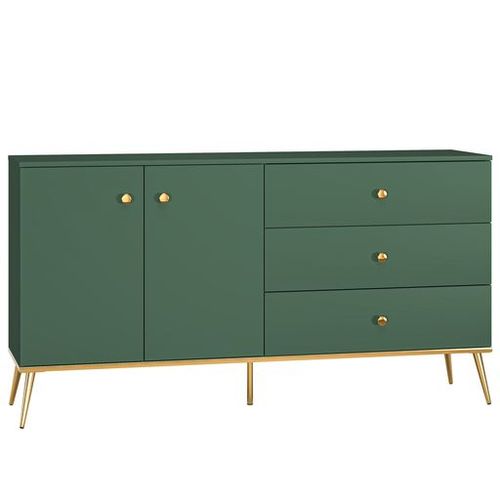 Luksusowe meble, pełne elegancji oraz połysku rozjaśnią wnętrze nowoczesnego salonu jak i jadalni. Skośne stożkowe nóżki w kolorze błyszczącego złota, idealnie komponują się z wieńcem dolnym wykończonym w tym samym odcieniu złota. Delikatne złote uchwyty stanowią dopełnienie tej pełnej kunsztu oraz szyku kolekcji.