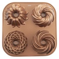 Forma do pieczenia czterech babeczek w różnych kształtach. Babeczki możemy przygotować z ciasta drożdżowego oraz ucieranego. Każdy z otworów posiada wyjątkowy wzór, dzięki czemu upieczone babeczki będą niezwykle efektownie prezentować się na stole. W formie możemy przygotować również wytrawne desery, pasztety a nawet mini chałki. Forma malowana jest natryskowo w kolorze miedzi. Łatwa w czyszczeniu i wygodna w użytkowaniu. Forma nie nadaje się do mycia w zmywarce do naczyń. Zapakowana jest w kartonowe pudełko, stanowi wyjątkowy prezent dla miłośników przygotowywania słodkich wypieków. Oryginalny produkt czeskiej marki Orion. Wyprodukowano zgodnie z europejskimi standardami.