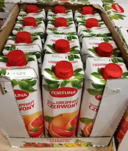 Nektar grejpfrut czerwony. Produkt Pasteryzowany. Zawartość owoców minimum 50%. Z soku zagęszczonego.