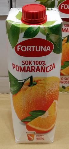 sok pomarańczowy z zagęszczonego soku pomarańczowego, substancja wzbogacająca – witamina C.