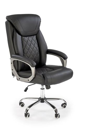 Fotel biurowy Einar w kolorze czarnym to nowoczesne i funkcjonalne rozwiązanie do każdego biura lub gabinetu domowego. Jego wymiary wynoszą 66 cm szerokości, 71 cm głębokości, 113-120 cm wysokości, z możliwością regulacji siedziska w zakresie 49-56 cm. Obicie wykonane jest z trwałej tkaniny ekoskóra, która zapewnia elegancki wygląd oraz łatwość w utrzymaniu czystości.