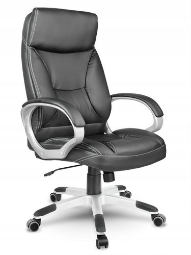 ✔️ Nowoczesny i elegancki design z czarną ekoskórą i białym szwem, komponujący się z każdą aranżacją biurową.