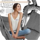 Solidna konstrukcja z wysokiej jakości materiałów, takich jak bawełna i poliester, zapewnia trwałość i bezpieczeństwo podczas użytkowania. Wytrzymałe liny i drewniany stelaż gwarantują stabilność, umożliwiając Ci pełny relaks bez obaw.