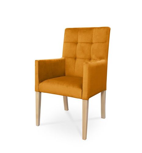 Nowoczesny fotel tapicerowany Carol to idealny produkt do wyposażenia Twojego wnętrza. Stylowy tapicerowany fotel został dbale wykonany i wyprofilowany, by zapewnić komfort siedzenia na najwyższym poziomie. Na oparciu zastosowano ozdobne pikowania i przeszycia. Dzięki wysokim podłokietnikom fotel, produkt jest bardzo wygodny i utrzymuje ciało w bardzo wygodnej pozycji. Tapicerowane krzesło jest osadzone na wysokich drewnianych nogach.