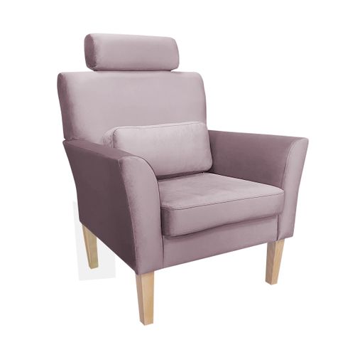 Fotel został wyposażony w drewniane nóżki, dostępne w 3 kolorach.