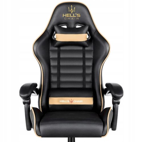 Fotel gamingowy HELL'S CHAIR HC-1003 Gold łączy ergonomiczną konstrukcję z nietuzinkowym, stylowym wyglądem. Kubełkowe siedzisko i oparcie zapewniają idealną pozycję, wspierając kręgosłup i mięśnie.