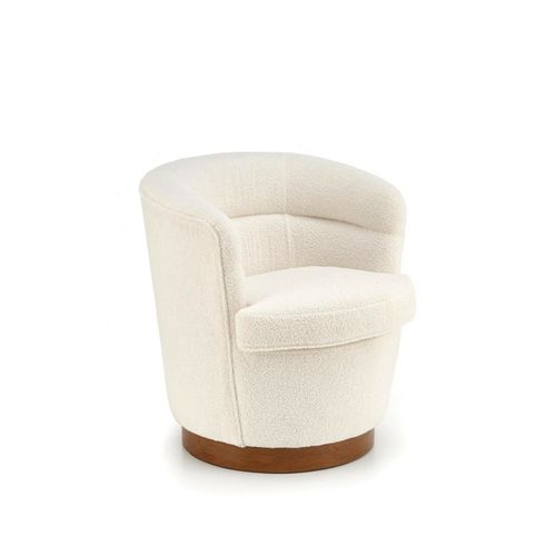 Uzyskaj idealny, nowoczesny wygląd dzięki temu kremowemu fotelowi tapicerowanemu Mayi od Intesi. Stworzony na metalowej ramie w kolorze ciemnego orzecha i tapicerowany kremową tkaniną bouclé, ma przyciągający wzrok design, który zapewnia komfort i styl.
