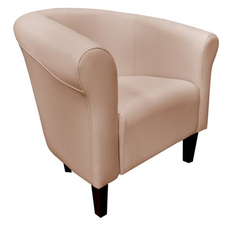 Miękki fotel wypoczynkowy wykonany z eco skóry wyposażony w drewniane bukowe nóżki w kolorze venge.