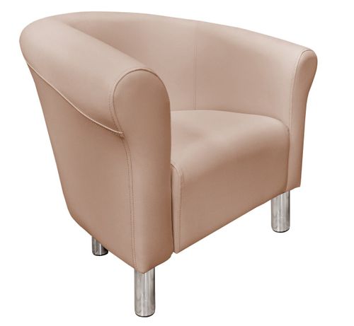 Miękki fotel wypoczynkowy wykonany z eco skóry wyposażony w metalowe chromowane nóżki.