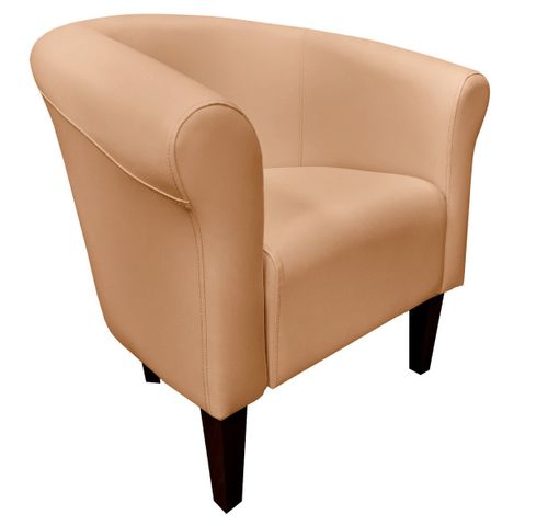 Miękki fotel wypoczynkowy wykonany z eco skóry wyposażony w drewniane bukowe nóżki w kolorze venge.