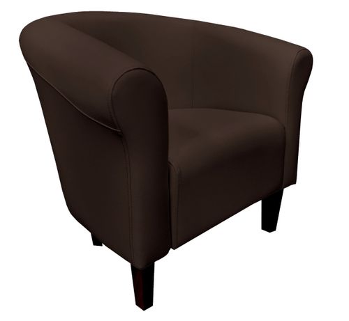 Miękki fotel wypoczynkowy wykonany z eco skóry wyposażony w drewniane bukowe nóżki w kolorze venge.