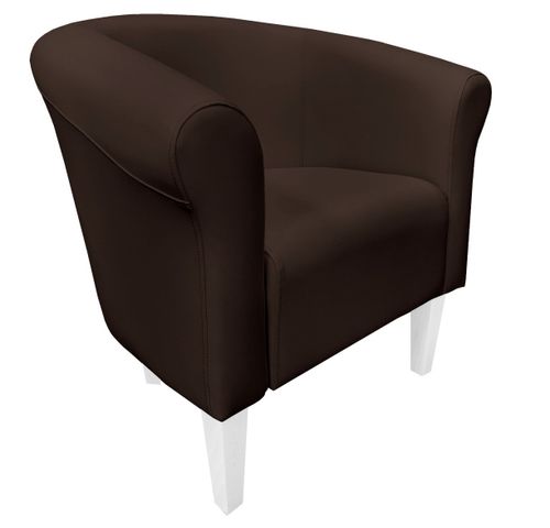 Miękki fotel wypoczynkowy wykonany z eco skóry wyposażony w drewniane bukowe nóżki w kolorze białym.
