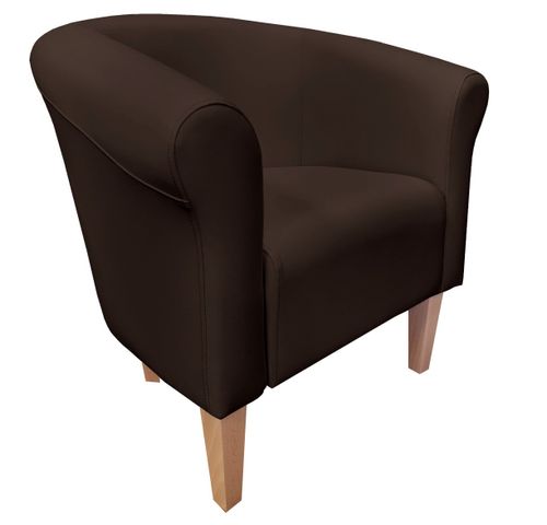 Miękki fotel wypoczynkowy wykonany z eco skóry wyposażony w drewniane bukowe nóżki w kolorze naturalnego drewna.