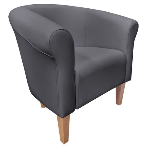 Miękki fotel wypoczynkowy wykonany z eco skóry wyposażony w drewniane bukowe nóżki w kolorze naturalnego drewna.