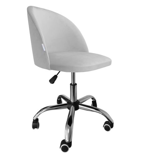 Nowoczesny i wygodny fotel obrotowy, tapicerowany miękką tkaniną na chromowanej podstawie.