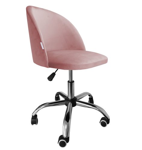 Nowoczesny i wygodny fotel obrotowy, tapicerowany miękką tkaniną na chromowanej podstawie.