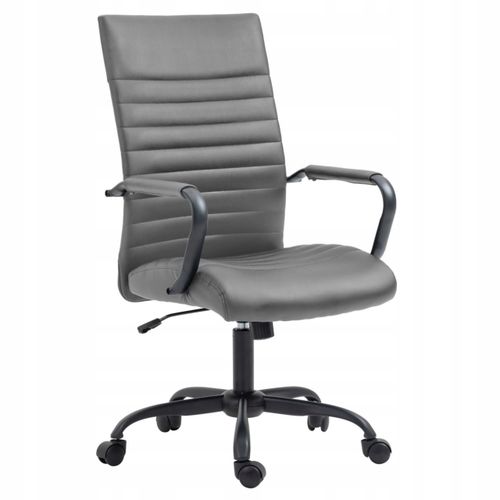 Fotel biurowy idealnie dopasowujący się do sylwetki siedzącego, obity miękką eko skórą. Wyprofilowany tak, aby zapewnić maksymalną wygodę, nawet przy wielogodzinnym siedzeniu. Wysoki, wbudowany zagłówek i odpowiednie wyprofilowanie gwarantuje funkcjonalność i oparcie dla głowy, a szerokie siedzisko pozwoli na wielogodzinną pracę. Podłokietniki są odpowiednio ukształtowane, co podnosi wygodę użytkowania, a także obciążenie kręgosłupa. 5 - ramienna podstawa - krzyżak z podwójnymi kółkami łatwo się obraca i zapewnia stabilne przemieszczanie.