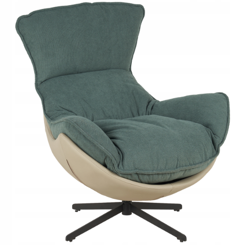 Czarna stalowa podstawa typu krzyżak zapewnia stabilność i wytrzymałość, a funkcja obrotowa 360° podnosi komfort użytkowania – bez konieczności przesuwania mebla możesz obracać się w dowolnym kierunku. Fotel jest wolnostojący, dzięki czemu świetnie wygląda z każdej strony i można go ustawić zarówno przy ścianie, jak i w centralnej części pomieszczenia.