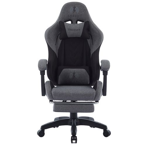 Fotel Gamingowy INFINI ThrustX to wygodne krzesło przeznaczone głównie dla entuzjastów gier komputerowych. Konstrukcja fotela obejmuje obicie wykonane z tkaniny i wysuwany miękki podnóżek. Dodatkowo, fotel wyposażony jest w dwie regulowane, odpinane poduszki, co pozwala dostosować go do indywidualnych preferencji użytkownika.