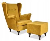 Fotel, którego dotyczy aukcja, wykonany został w tkaninie ROYAL 10 - złoty, musztardowy, miodowy.