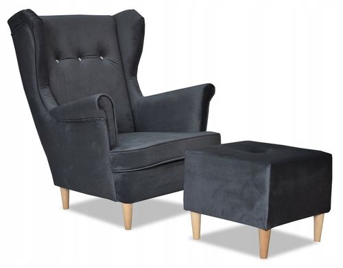 Fotel, którego dotyczy aukcja, wykonany został w tkaninie MONOLITH 97- ciemna szarość, ciemny grafit.