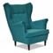 Fotel, którego dotyczy aukcja, wykonany został w tkaninie AMORE 66 - turkusowy, niebieskozielony miękki welur.