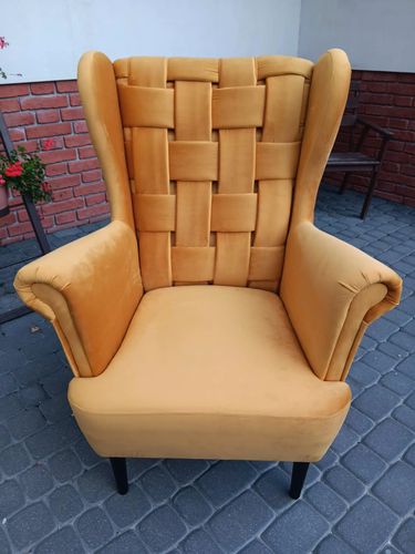 👉 Konstrukcja fotela wykonana z drewna bukowego oraz sklejki.