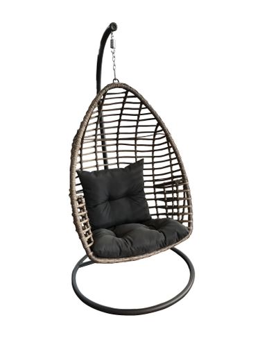 Fotel wiszący ogrodowy poddany testom bezpieczeństwa i trwałości użytkowania, wyróżnia się nie tylko solidnością, ale i elegancją, podkreśloną przez wygodną poduszkę, która dodatkowo zwiększa komfort wypoczynku.