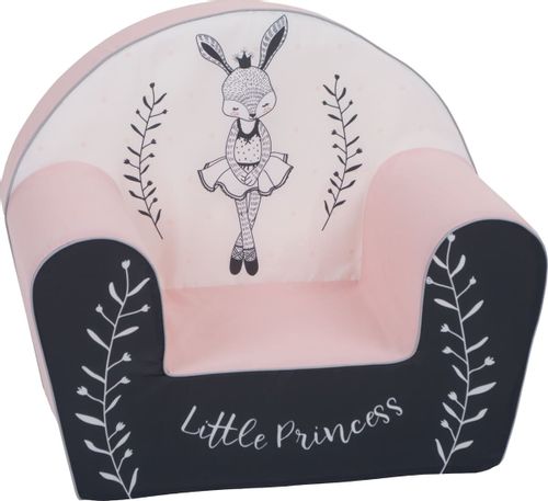 Fotelik zdobiony jest ozdobnymi paskami oraz zadrukowanymi elementami z poliestru, co dodaje mu atrakcyjnego wyglądu. Dzięki wymiarom 43 cm wysokości, 51 cm szerokości oraz 33 cm długości, idealnie wpasuje się w każde dziecinne wnętrze.
