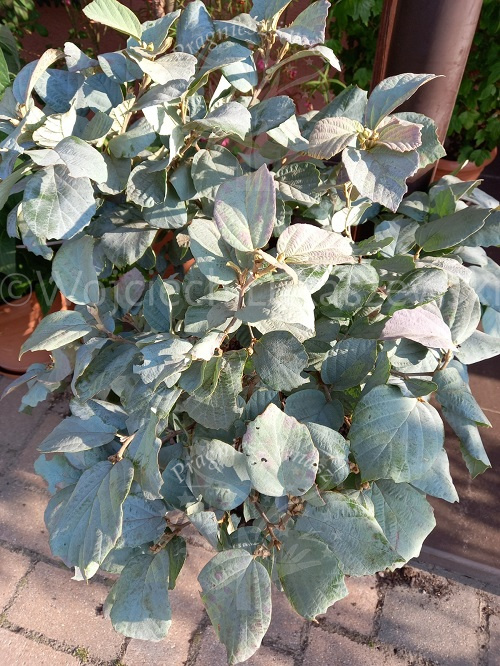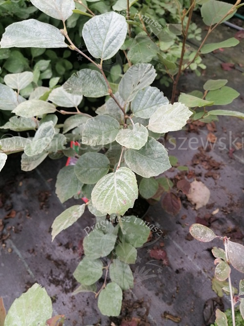 Fotergilla pośrednia Blue Shadow - Fothergilla x intermedia (pojemnik C2) – odmiana wyróżniająca się uderzająco niebieskim odcieniem liści w sezonie. Zachowuje też pozostałe cechy podstawowej odmiany, czyli oryginalne kwitnienie i ogniste, jesienne wybarwienie listowia. Fotergilla amerykańska – krzew liściasty, który po dekadzie osiągnie wysokość około 120-200 centymetrów.